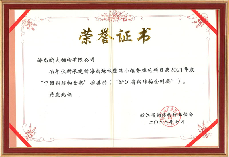 2021年度浙江省鋼結(jié)構(gòu)金剛獎(jiǎng)